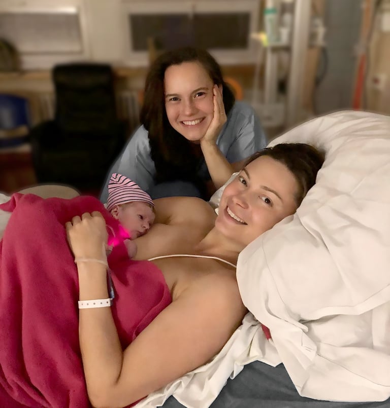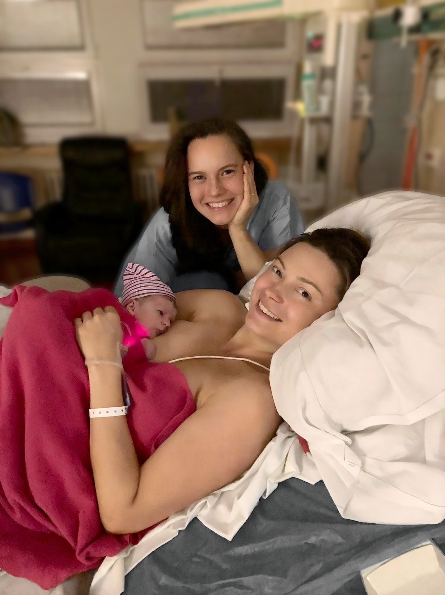 "Celý porod byl pro mě neuvěřitelným zážitkem a finální tlačení byla skoro euforie. Vůbec si neumím představit, jak to všechno ženy bez podpory zvládají. Jste žena na svém místě a navždy budete patřit k tomu úžasnému okamžiku narození naší dcery. ♡♡♡ DĚKUJEME."